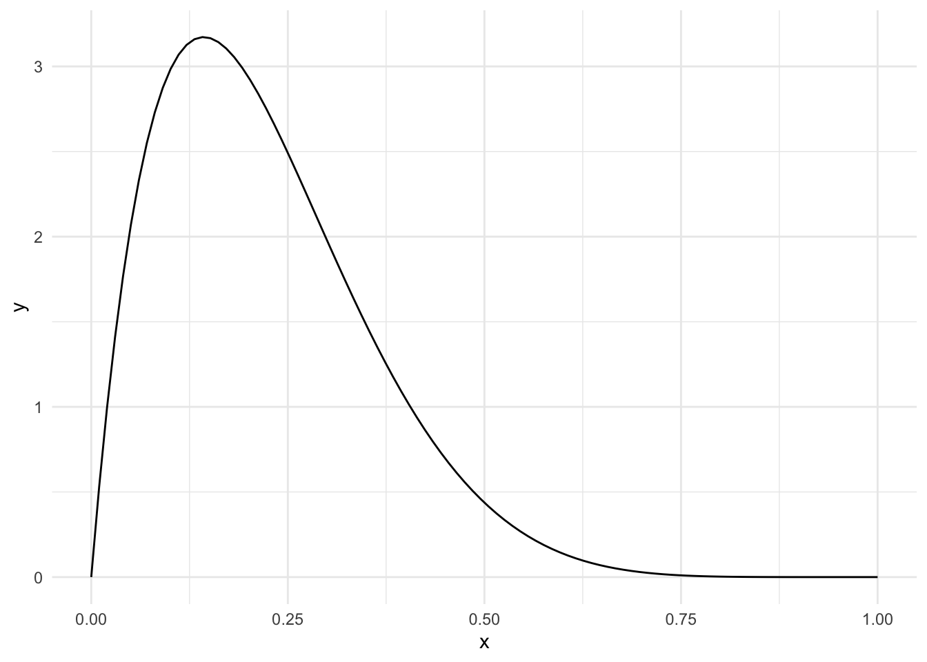 stat_function(fun = dbeta, n=100, args=list(shape1=2, shape2=7))