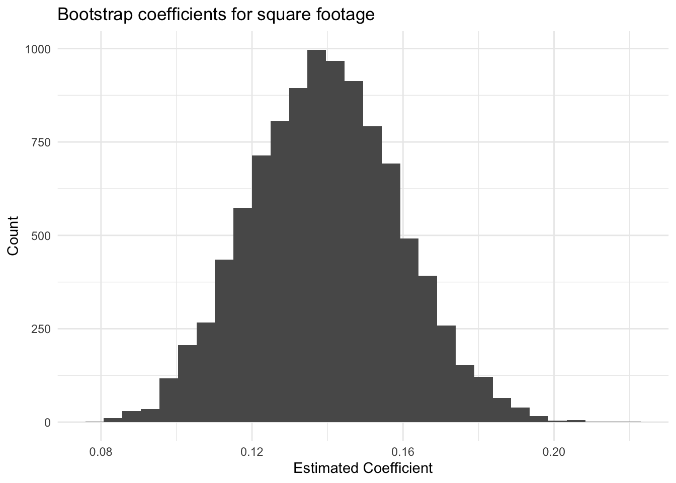 Below is code that will conduct a boostrapping estimator of the uncertainty of the sqrft variable when lotsize and colonial are included in the model.